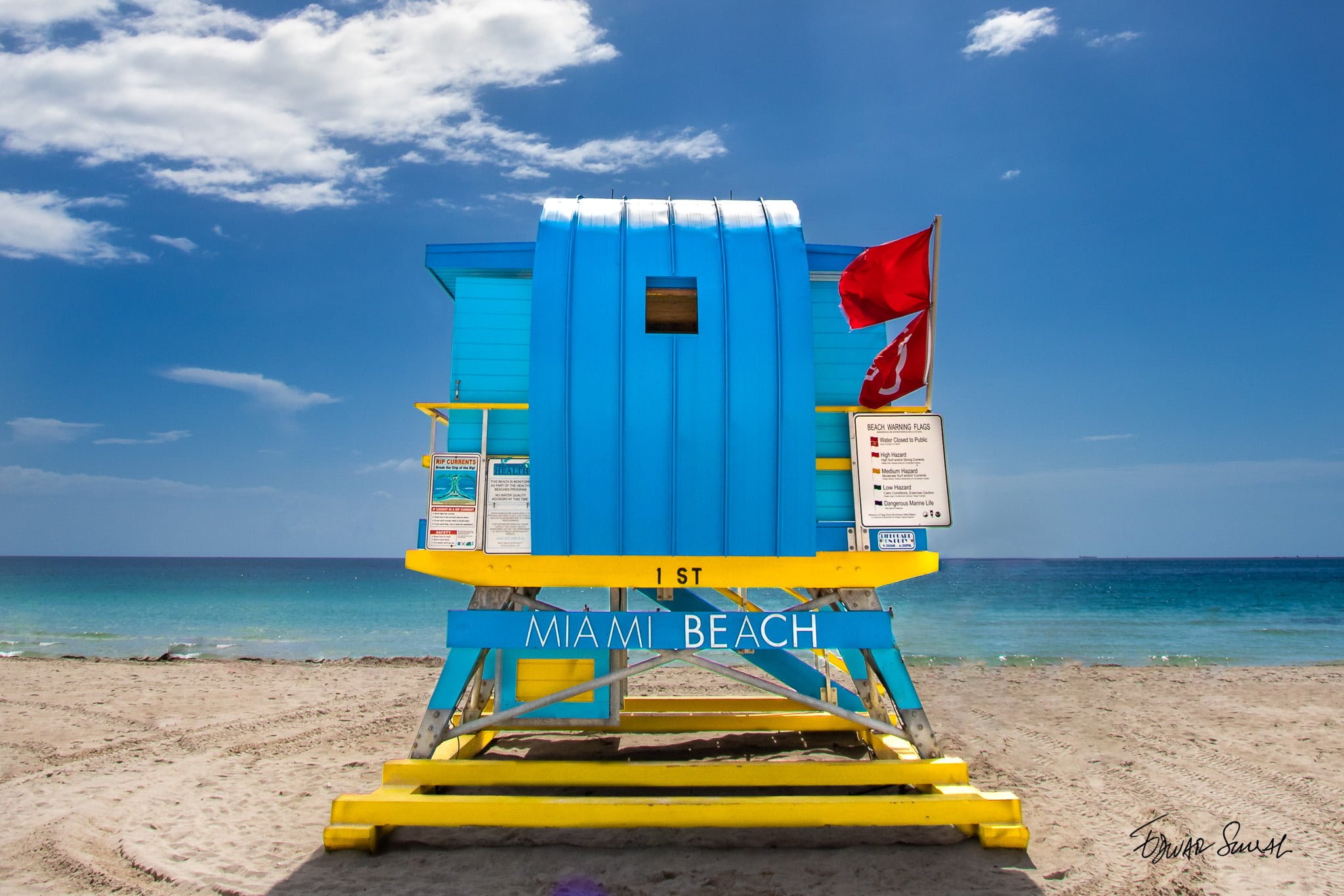Photograph of the Iconic Lifeguard Tower in Miami Beach, Florida, captured by the artist Edwar Simal Chang.