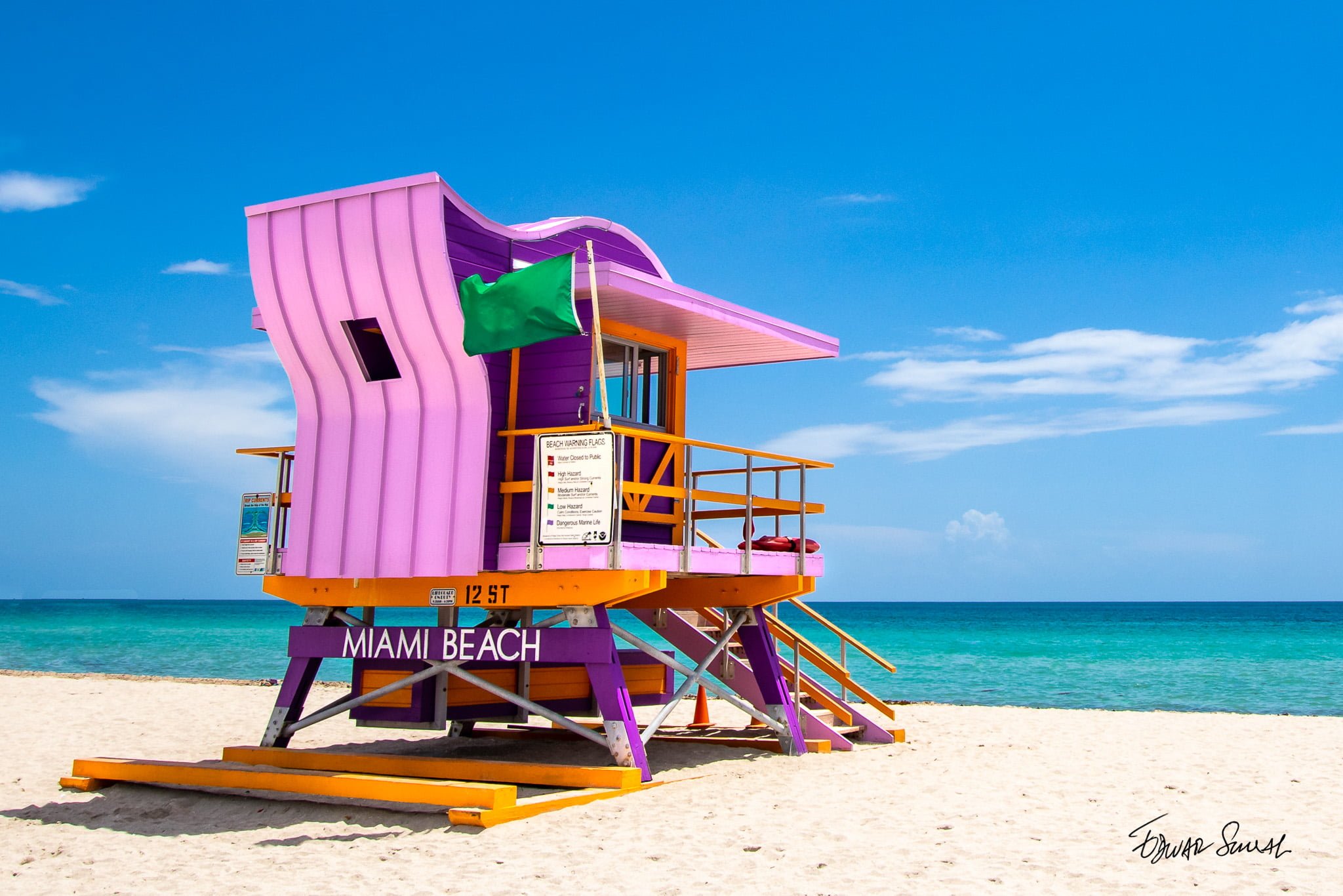 Photograph of the Iconic Lifeguard Tower in Miami Beach, Florida, captured by the artist Edwar Simal Chang.