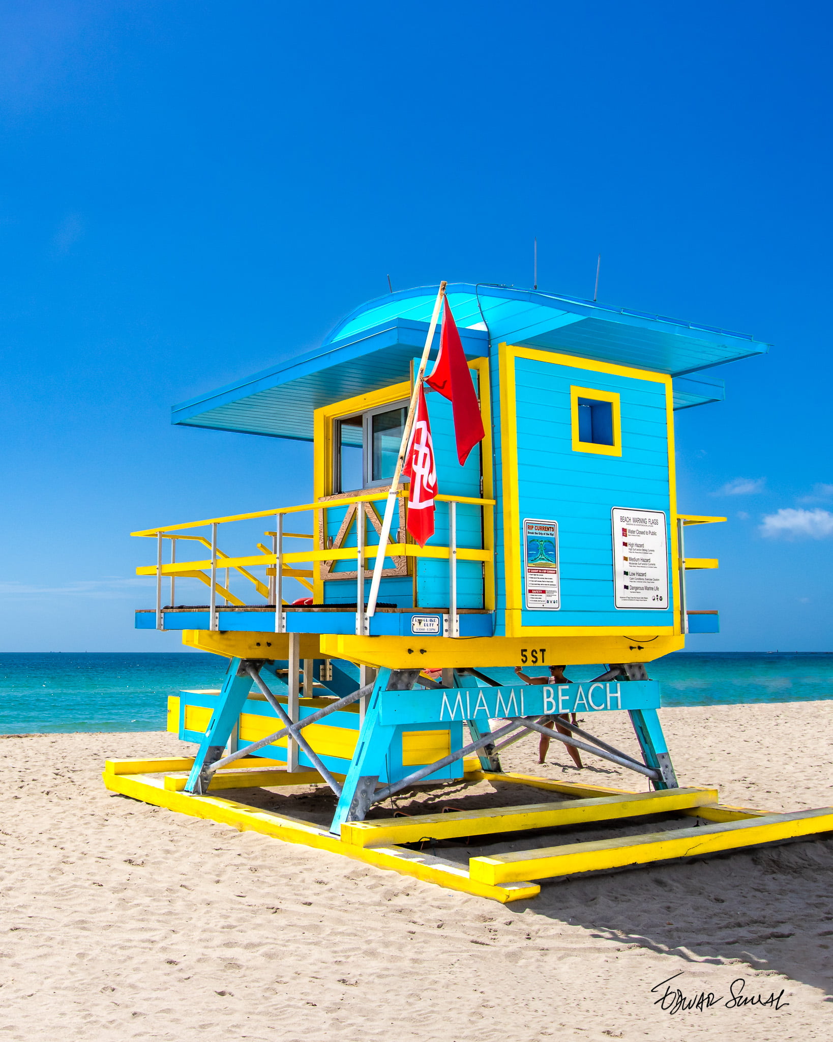 Photograph of the Iconic Lifeguard Tower in Miami Beach, Florida, captured by the artist Edwar Simal Chang.